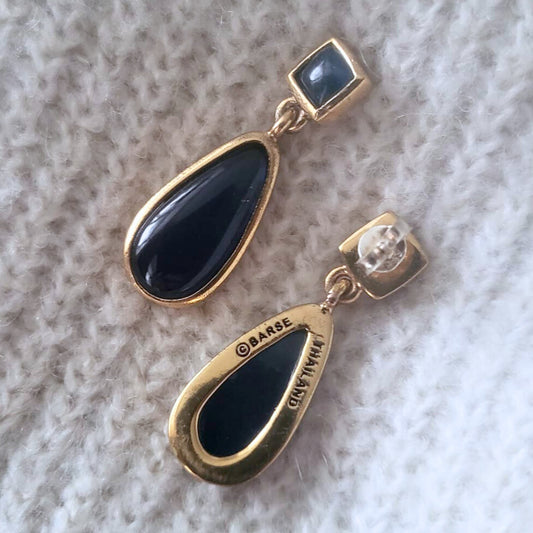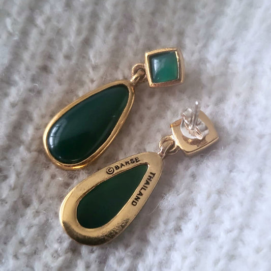 Barse Brons en Zilver Oorhangers Drup Groene Onyx