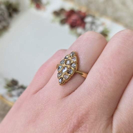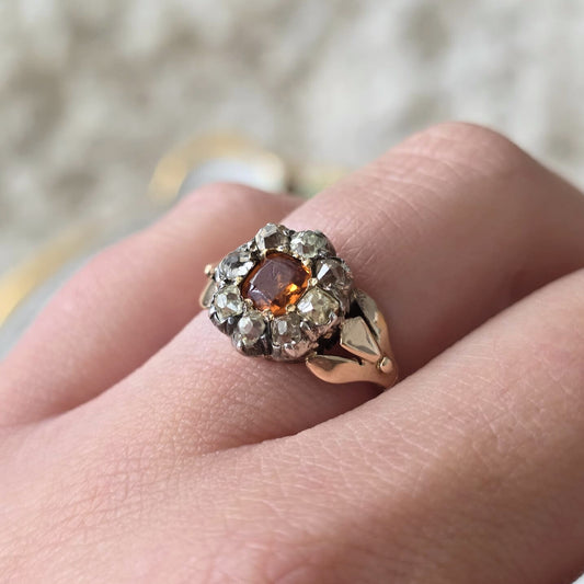 Antieke 14k rosé gouden ring met roosgeslepen diamanten en citrien