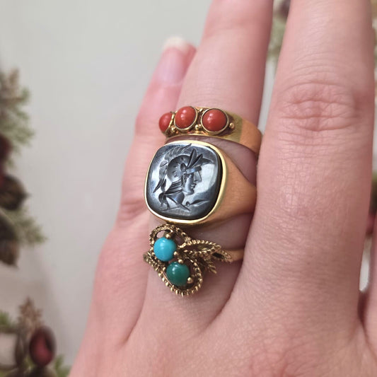 Vintage 14k gouden zegel ring met hematiet intaglio