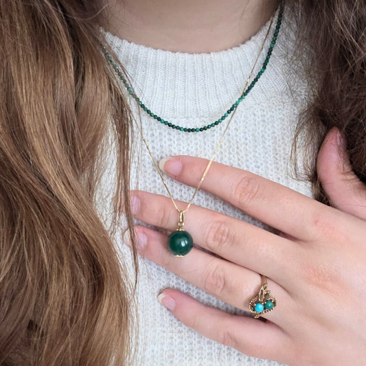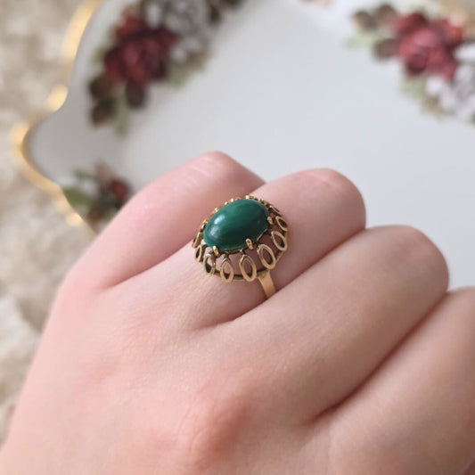 Vintage 14k gouden ring met malachiet