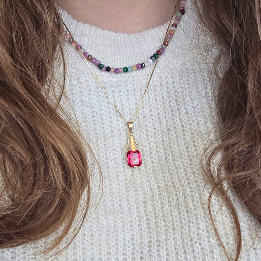 Vintage 14k gouden hanger met rode steen