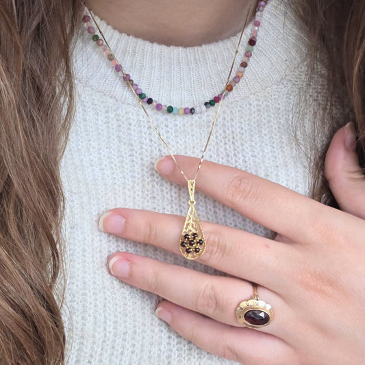 Vintage 14k gouden hanger met granaat