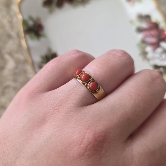 Vintage 14k gouden ring met bloedkoraal