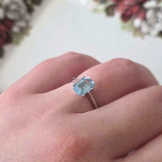 Vintage 14k wit gouden ring met aquamarijn