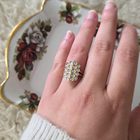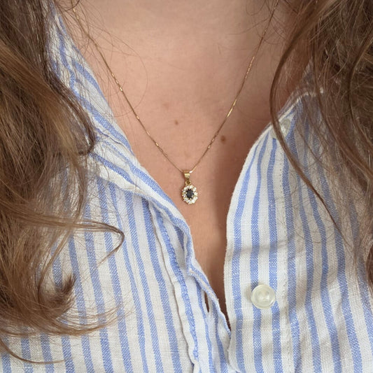Vintage 14k gouden lady diana ring met saffier en diamant