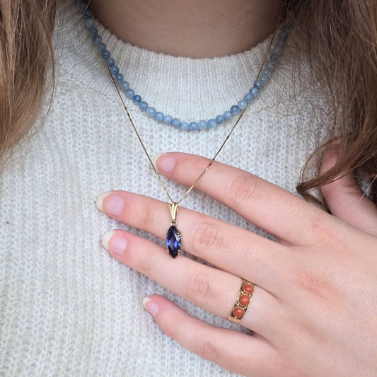 UitverkochtVintage 14k gouden hanger met saffier en kwarts