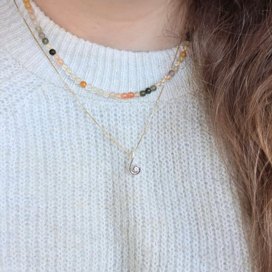 Barse Zilver Ketting met Oranje Cabochon Hanger