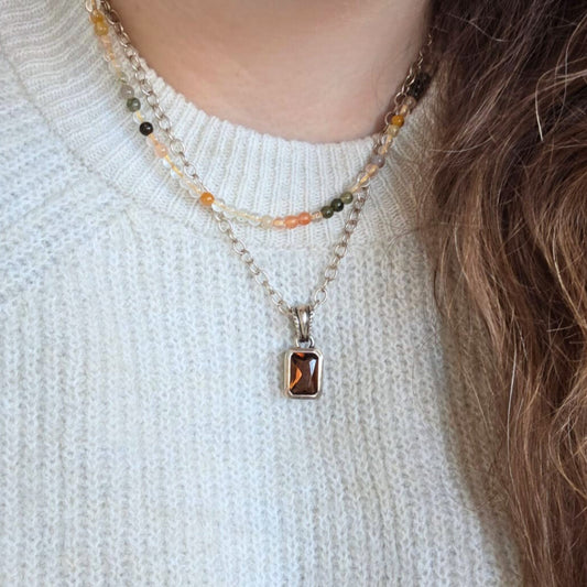Barse Zilver Ketting met Cognac Crystal Hanger