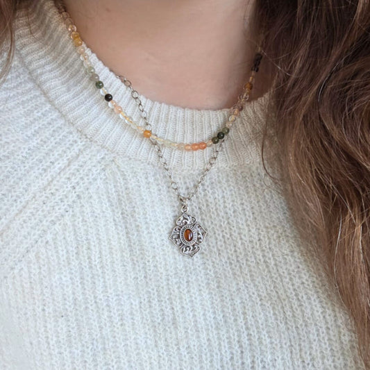 Barse Zilver Ketting met Oranje Cabochon Hanger