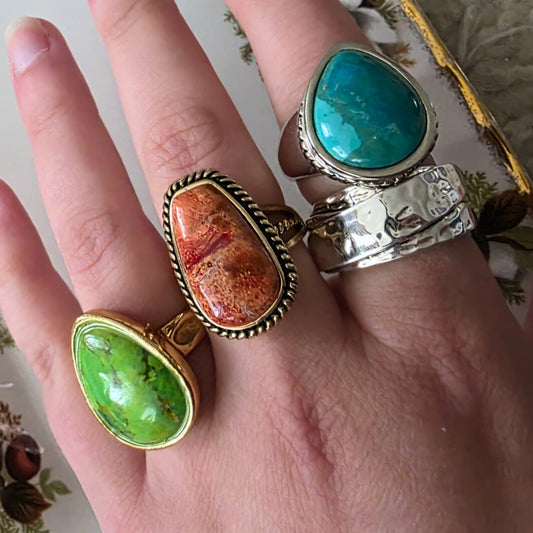 Barse Brons Lime Groene Turquoise Ring