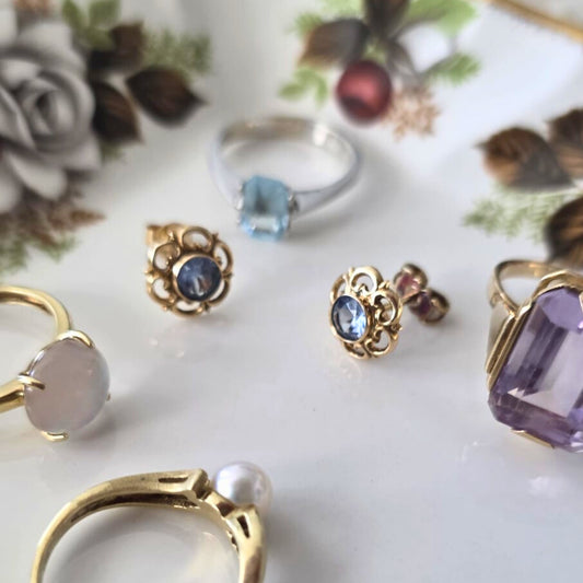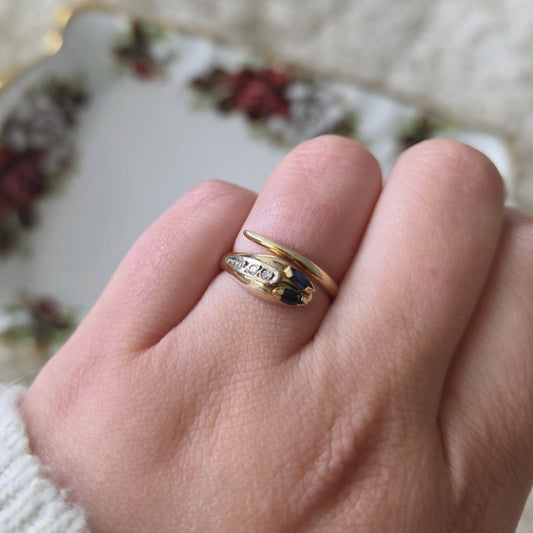 Vintage 14k gouden lady diana ring met saffier en diamant