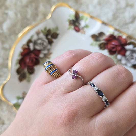 UitverkochtVintage 8k gouden ring met robijn en diamant