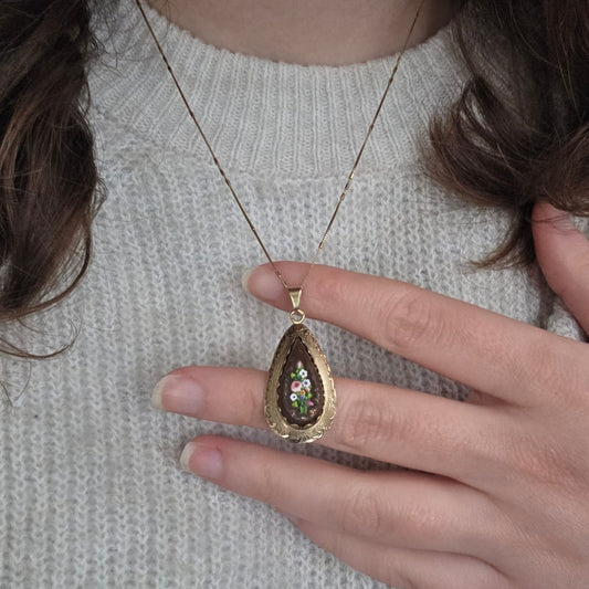 Antieke 14k gouden hanger met goudsteen en micromozaïek