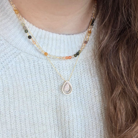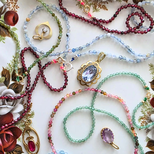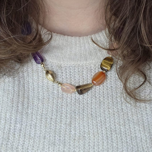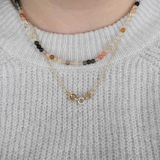 UitverkochtVintage 14k gouden bakslot ketting multi steen