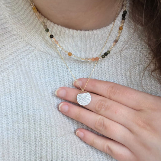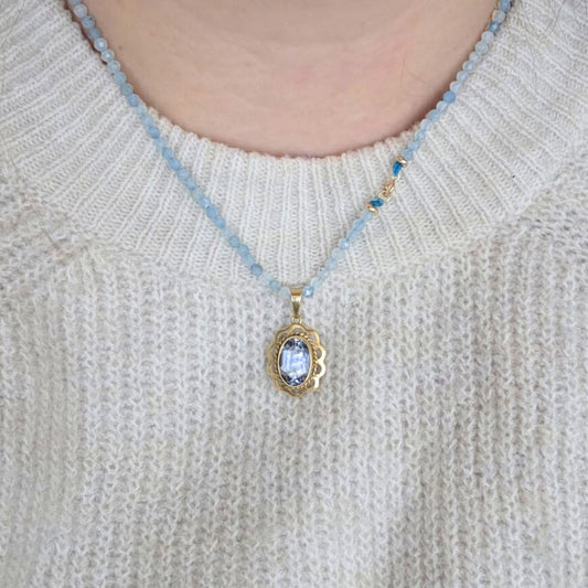 Barse Zilver Ketting Calciet, Turqoise, Stekeloester schelp