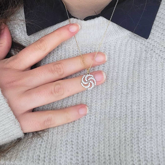 Pre-owned 14k gouden ketting met hanger zirkonia