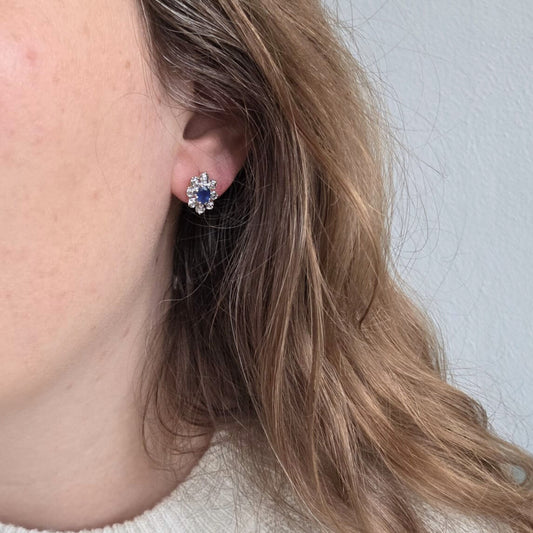 Vintage 14k gouden oorstekers lady diana saffier en diamantjes
