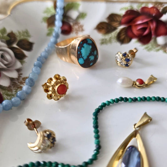 Vintage 14k gouden oorstekers saffier en diamantjes