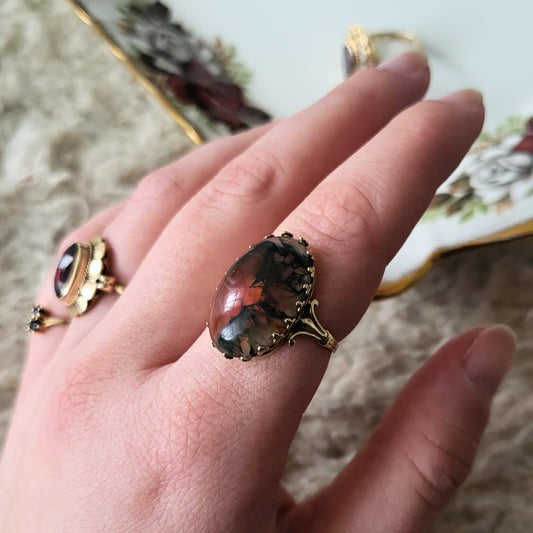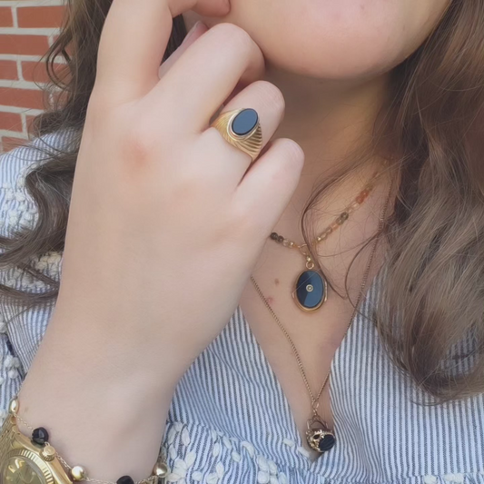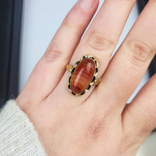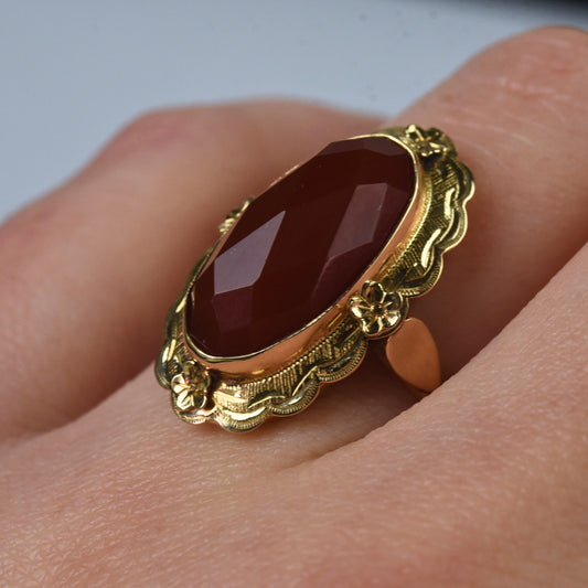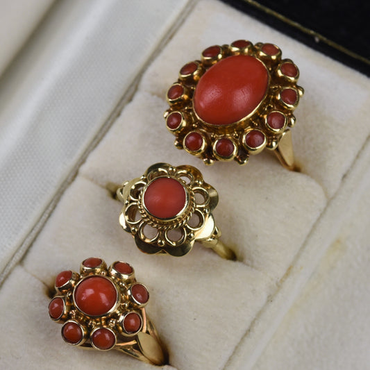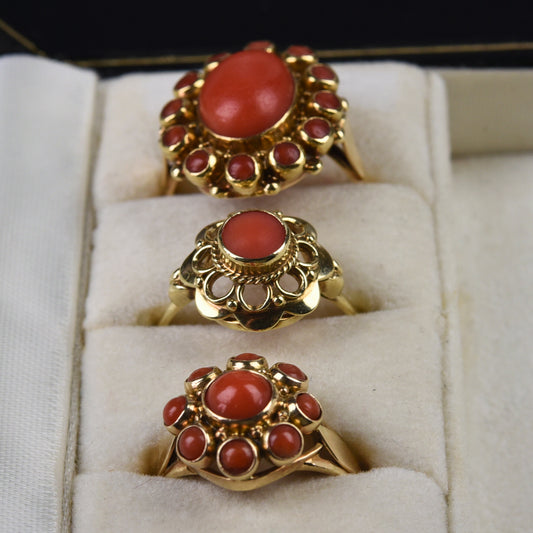 Vintage 14k gouden ring met bloedkoraal entourage groot