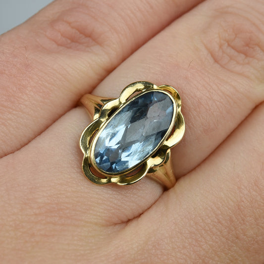 UitverkochtVintage 14k gouden ring met aquamarijn