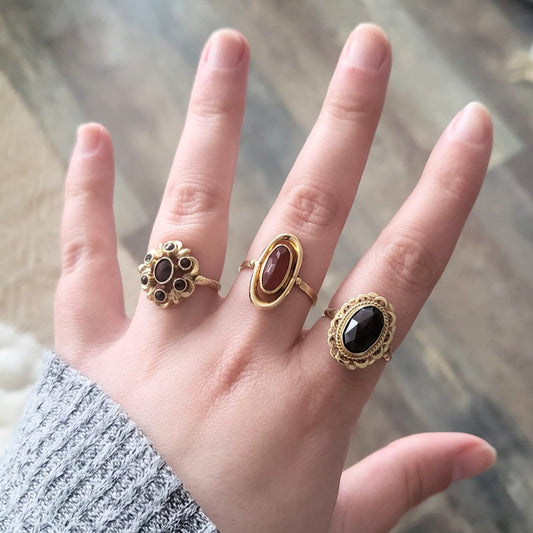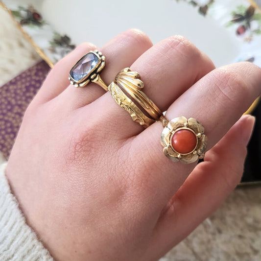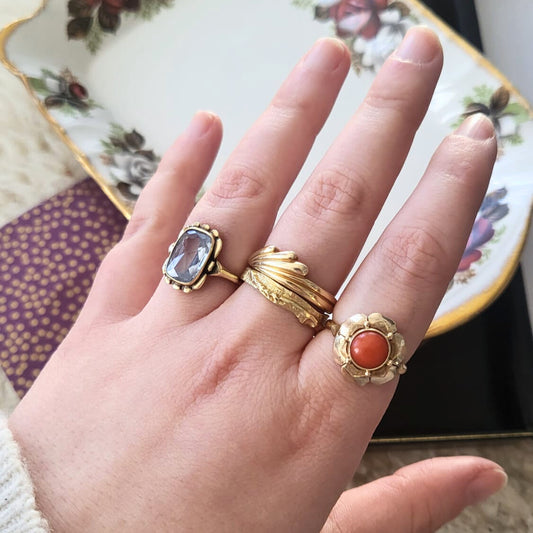 Vintage 14k gouden ring met bloedkoraal entourage klein