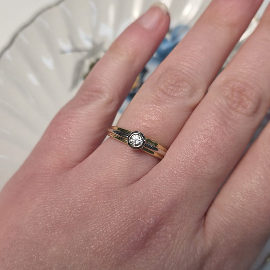 Vintage 18k gouden verlovingsring met diamant bicolor