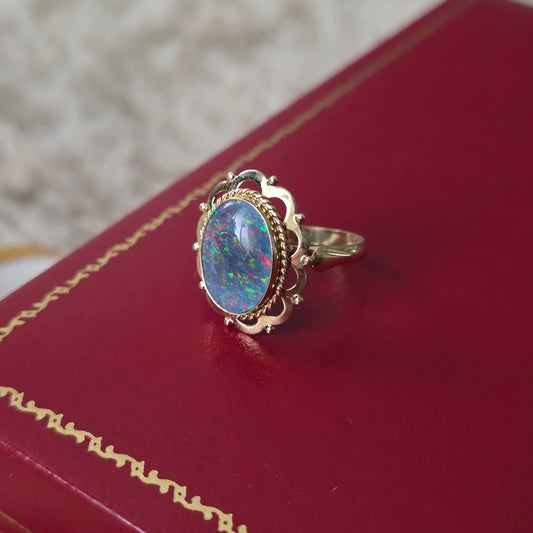 Vintage 9k gouden ring met paarse toermalijn en diamant