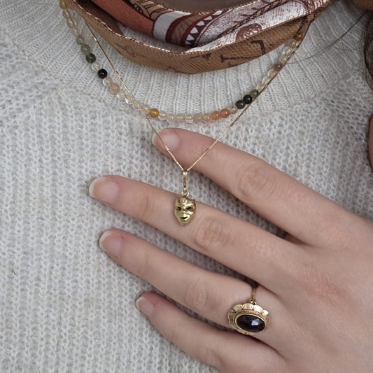 Vintage 18k gouden hanger met diamant masker