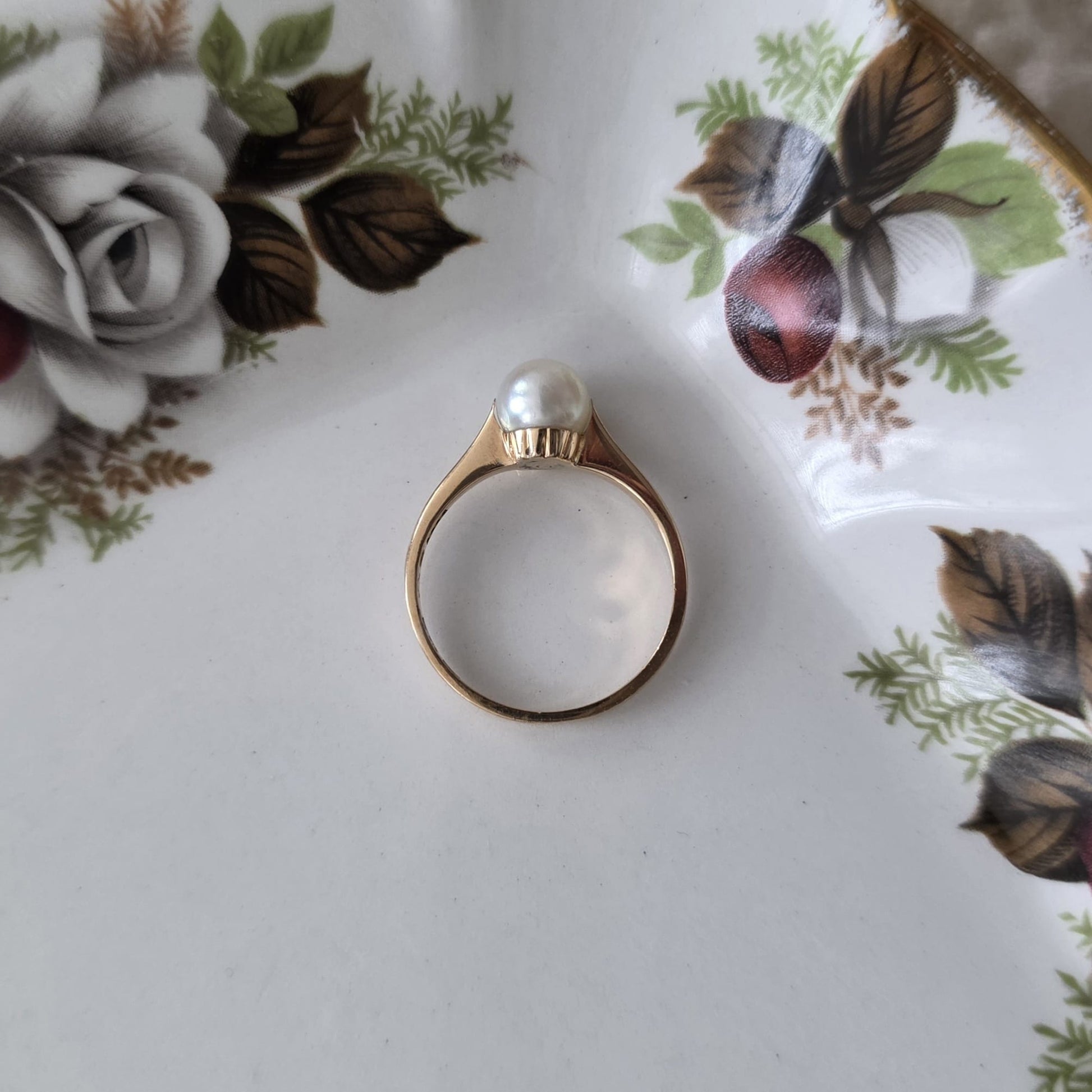 Deze vintage ring is gemaakt van 18k geel goud, voorzien van een prachtige parel en is verkrijgbaar in maat 16.25 - 51. Niets straat meer romantische lieflijkheid uit dan een parel. Voeg een vleugje tijdloze elegantie toe aan uw sieradencollectie met dit vintage exemplaar.