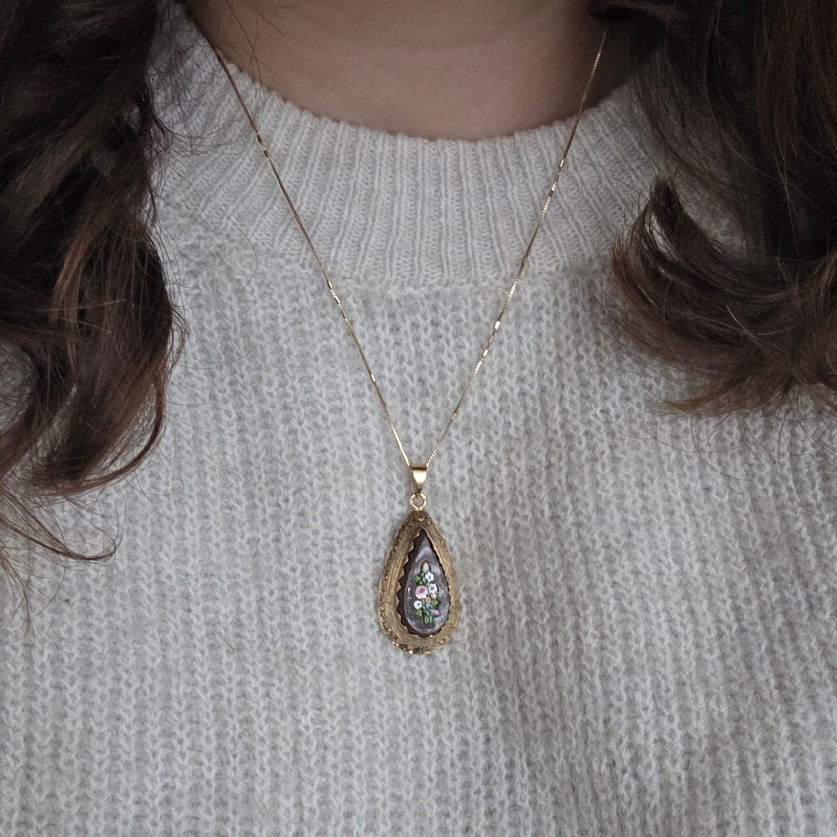 Antieke 14k gouden hanger met goudsteen en micromozaïek