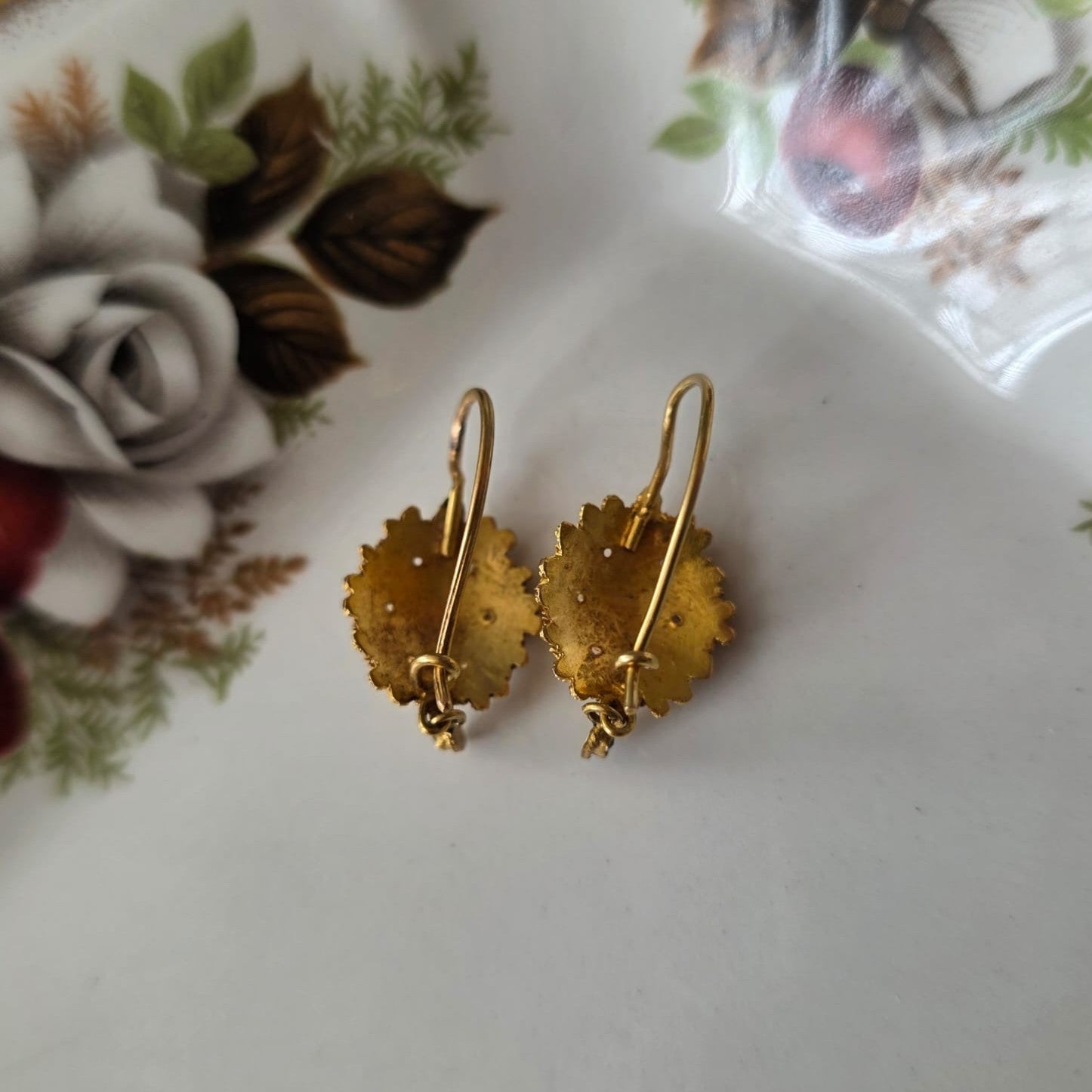 Deze antieke oorbellen zijn gemaakt van 14k geel goud (getoetst), voorzien van prachtige granaat edelstenen. Deze antieke oorbellen waren deel van de klederdracht (Ca. 1880) en hebben prachtige filigraan details. Er hangt een klein granaatje onderaan de oorbel. Het haakje waarmee de oorbel sluit zorgt er voor dat de oorbel niet kan afvallen. Het goud is getest als 14 karaat, de kleur van deze oorbellen is geler dan de moderne 14 karaat sieraden, omdat er vroeger een andere legering werd gebruikt. Voeg een vleugje tijdloze elegantie toe aan uw sieradencollectie met dit antieke paar.
