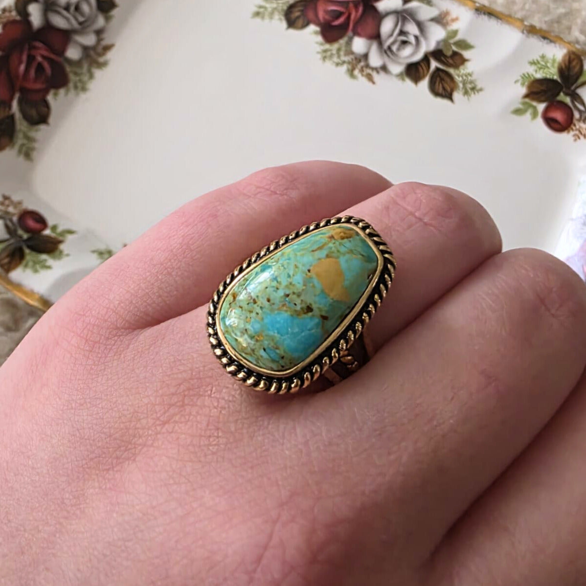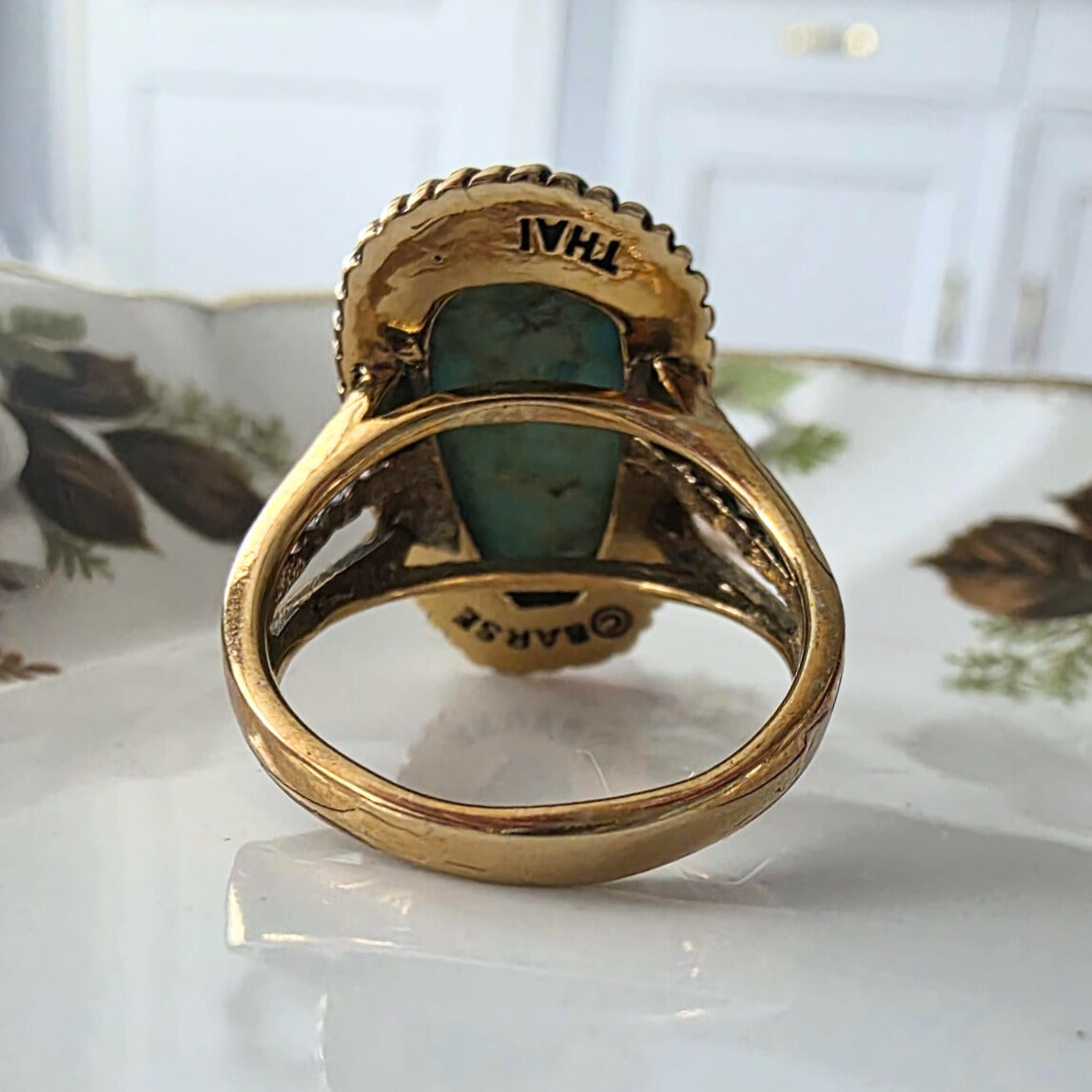 Barse sieraden staan bekend om de kleurrijke edelstenen en solide materialen zoals zilver, brons en koper. Alle Barse sieraden zijn handgemaakt met gebruik van metaal gieten of de verloren was methode. Deze prachtige bronzen ring met schitterende groene turquoise steen voegt een bohemian stijl toe aan iedere outfit!