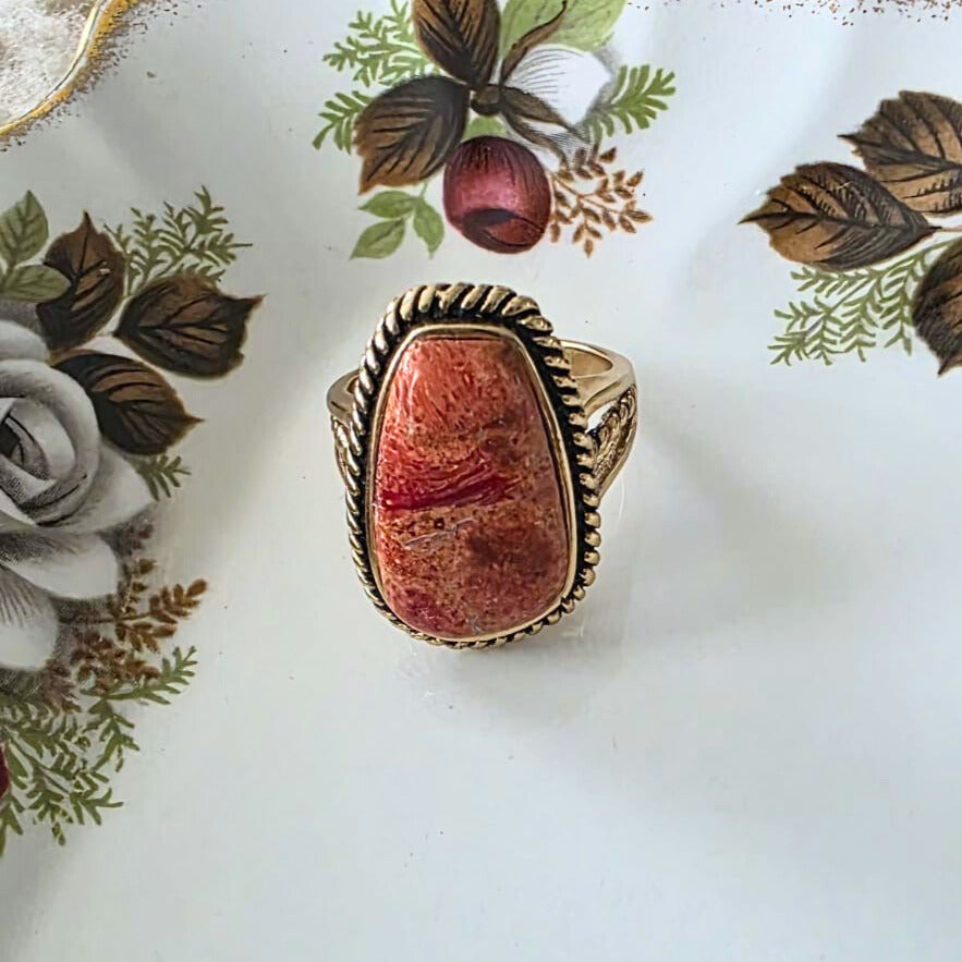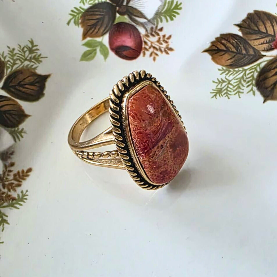 Barse sieraden staan bekend om de kleurrijke edelstenen en solide materialen zoals zilver, brons en koper. Alle Barse sieraden zijn handgemaakt met gebruik van metaal gieten of de verloren was methode. Deze prachtige bronzen ring met schitterende spons koraal voegt een bohemian stijl toe aan iedere outfit!
