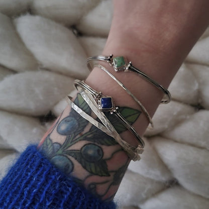 Barse sieraden staan bekend om de kleurrijke edelstenen en solide materialen zoals zilver, brons en koper. Alle Barse sieraden zijn handgemaakt met gebruik van metaal gieten of de verloren was methode. Deze prachtige 3 zilveren gehamerde bangle armbanden voegen een vleugje vintage stijl toe aan iedere outfit!