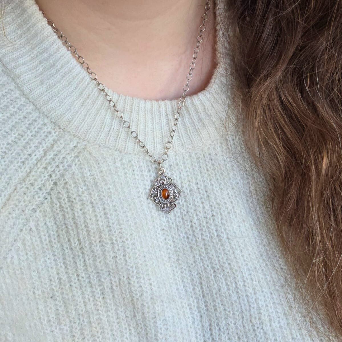 - Hanger met synthetische oranje cabochon steentje