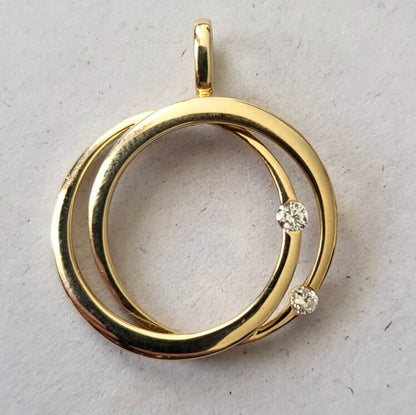 Deze pre-owned hanger is gemaakt van 14k geel goud (goud code 585), voorzien van prachtige diamanten. Voeg een vleugje tijdloze elegantie toe aan uw sieradencollectie met deze schitterende hanger.