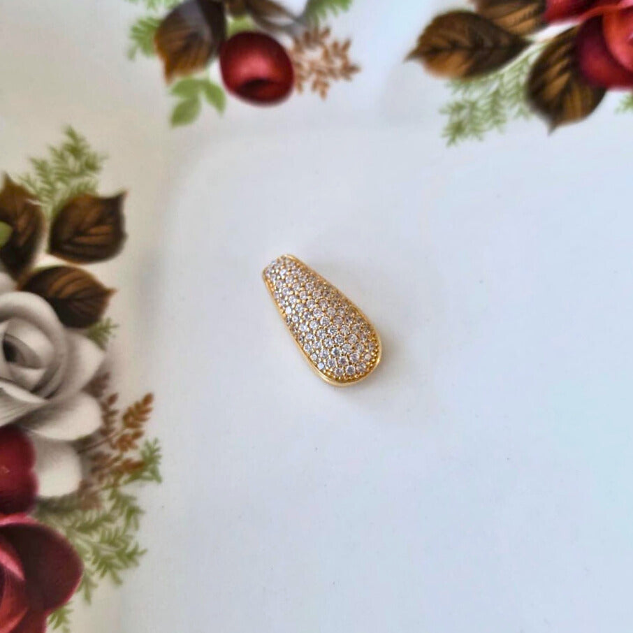 Deze pre-owned hanger is gemaakt van 14k geel goud (goud code 585), volledig bezet met kleine glinsterende zirkonia steentjes. Voeg een vleugje tijdloze elegantie toe aan uw sieradencollectie met deze schitterende hanger.