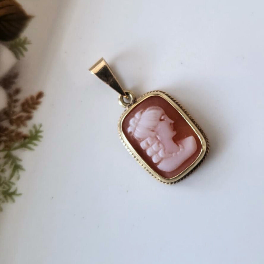 Deze vintage hanger is gemaakt van 14k geel goud (goud code 585), voorzien van een prachtige camee. Camee is een grafeer techniek in edelstenen of schelpen. Door de verschillende tinten van de grondstof in lagen of in de 'hoogte' valt het afgebeelde motief meer op. Voeg een vleugje tijdloze elegantie toe aan uw sieradencollectie met dit vintage exemplaar.