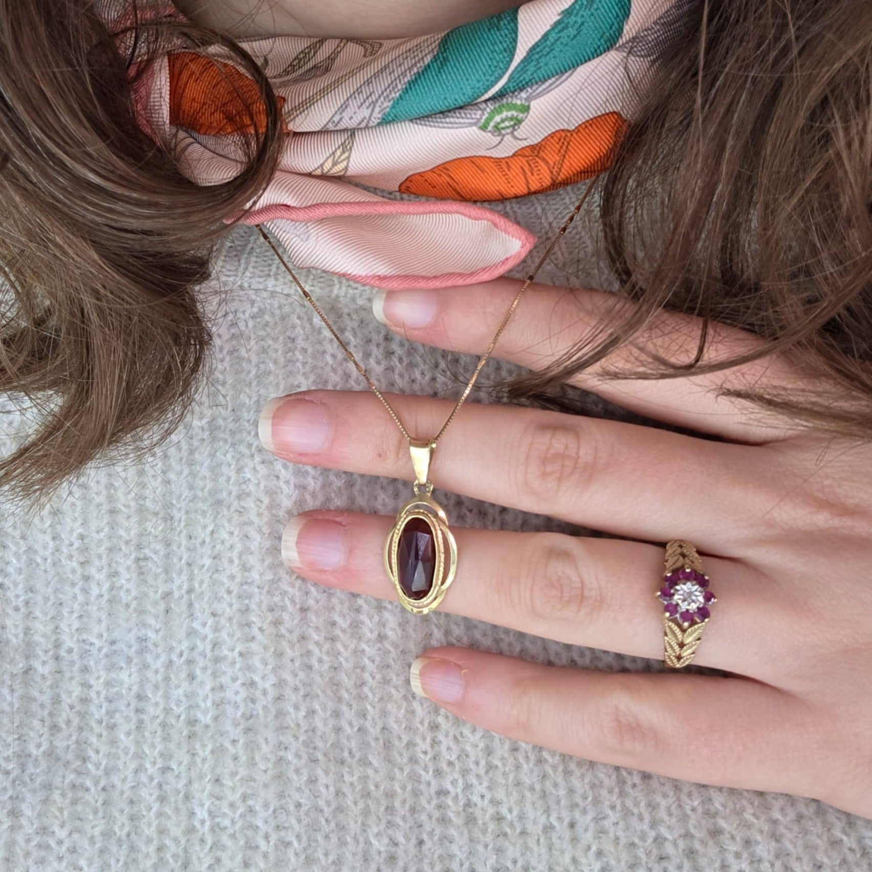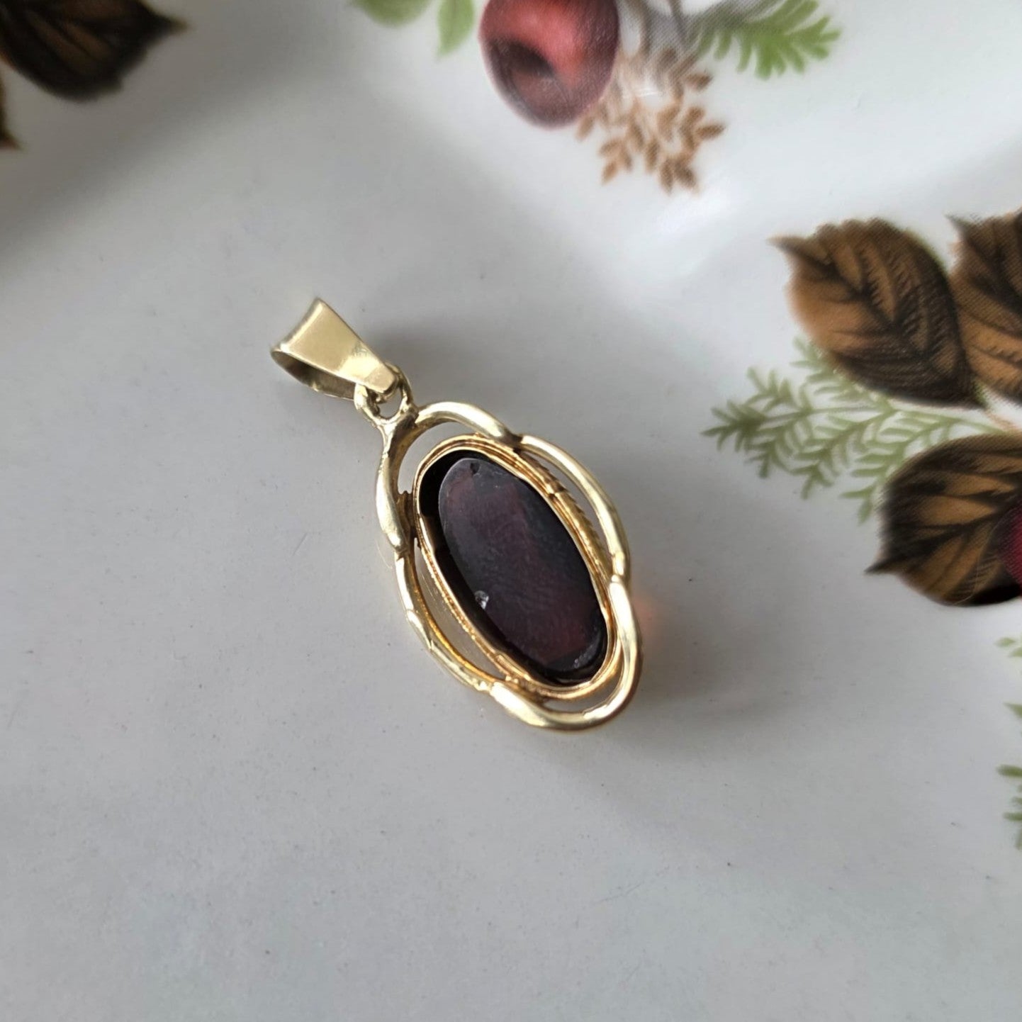 Vintage 14k gouden hanger met granaat