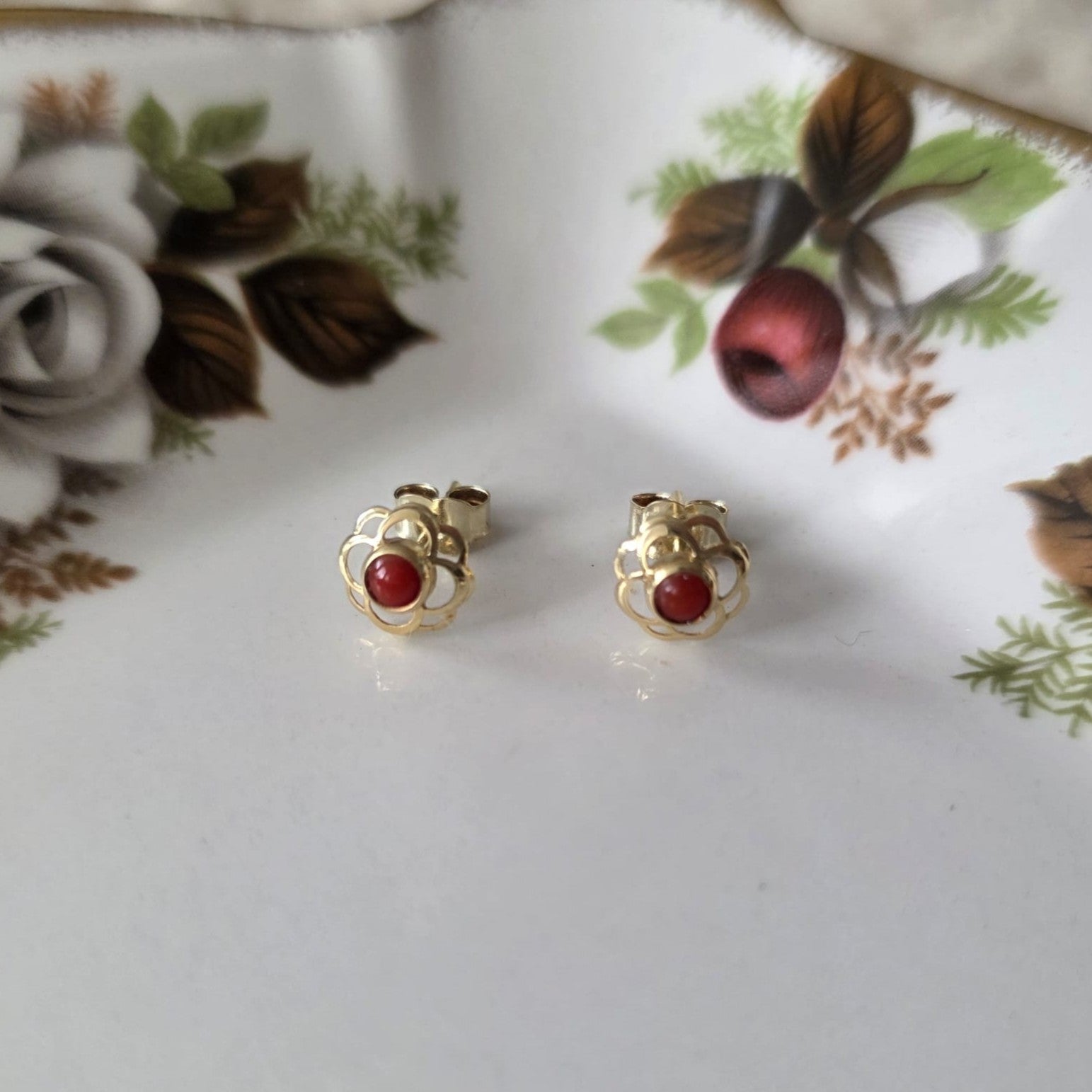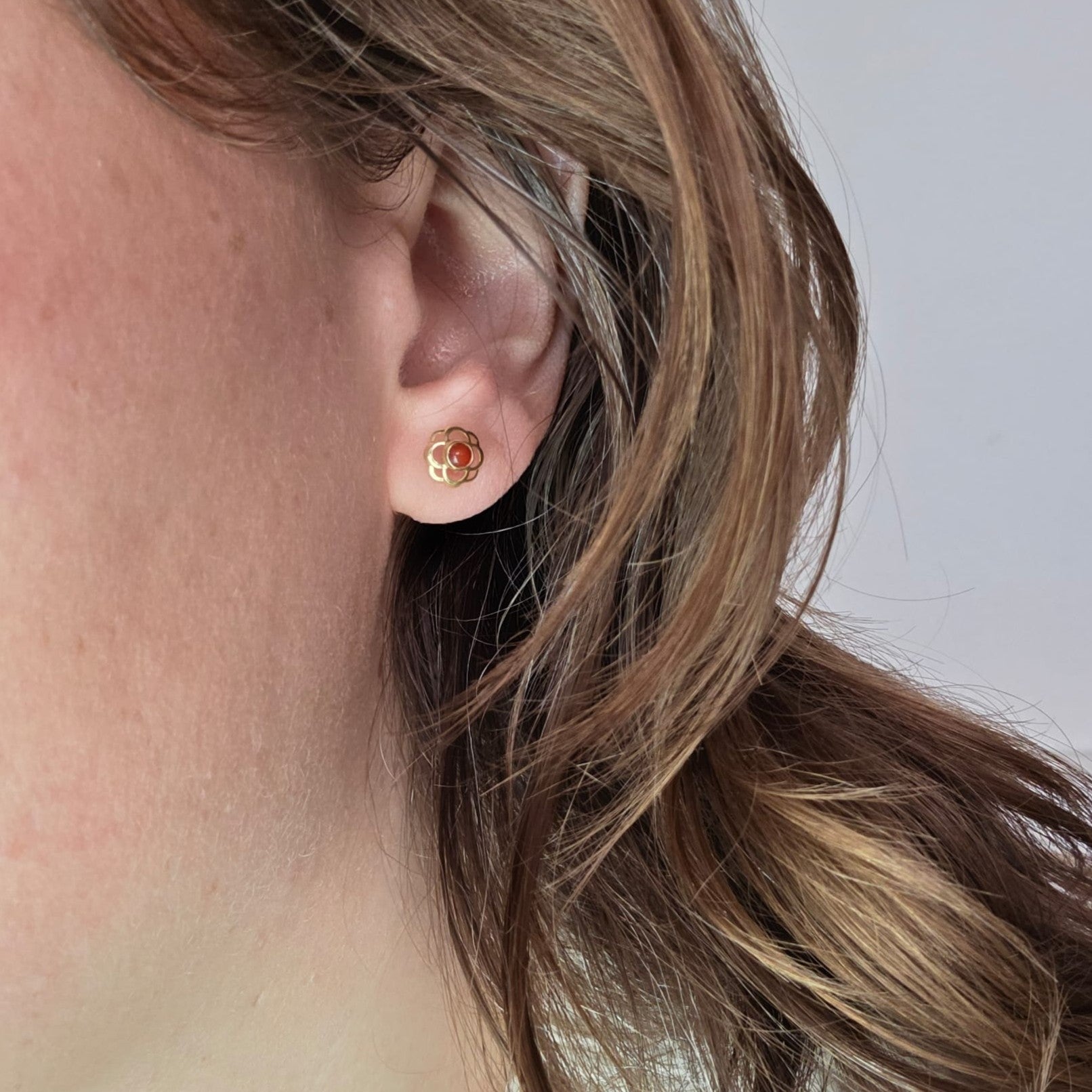 Vintage 14k gouden oorstekers carneool
