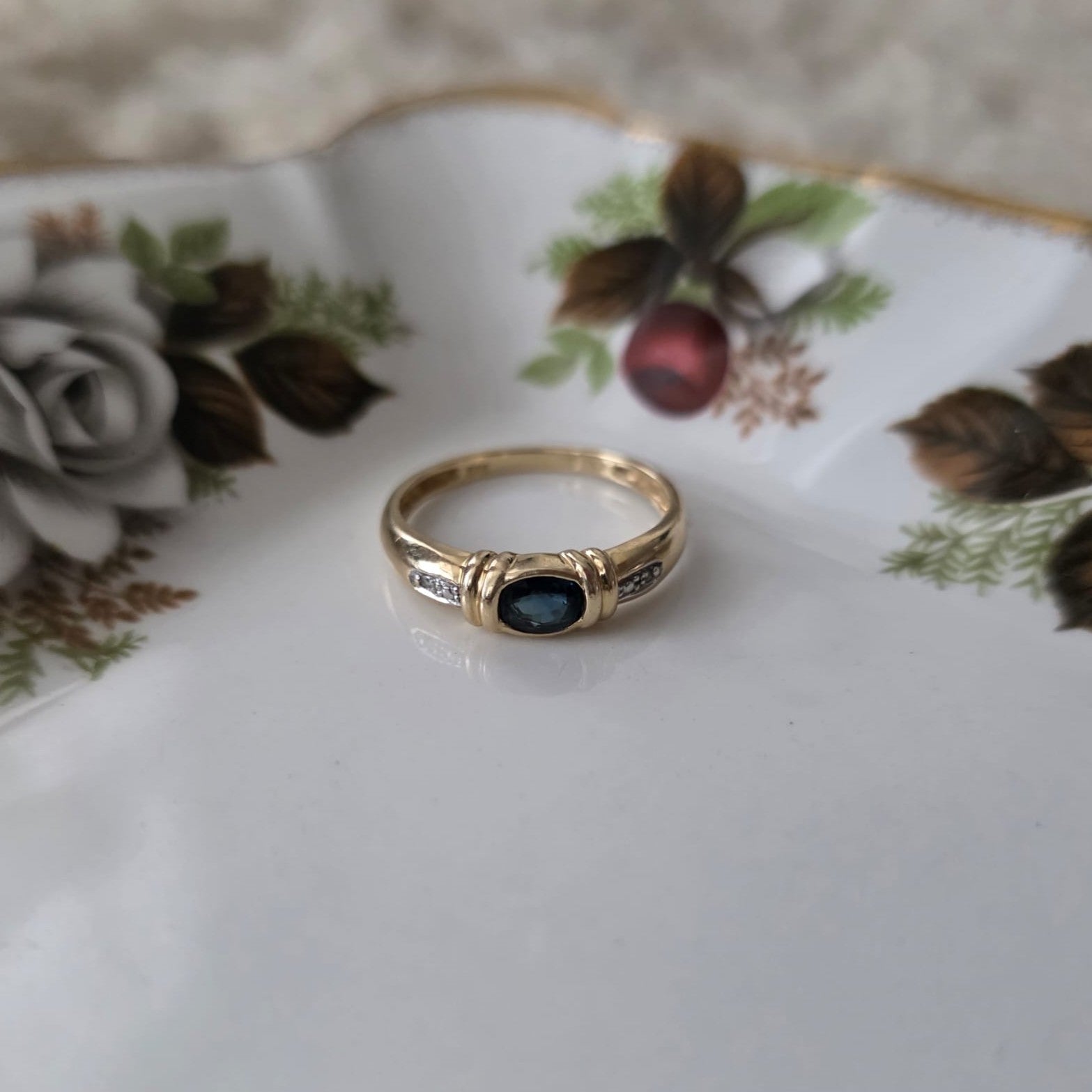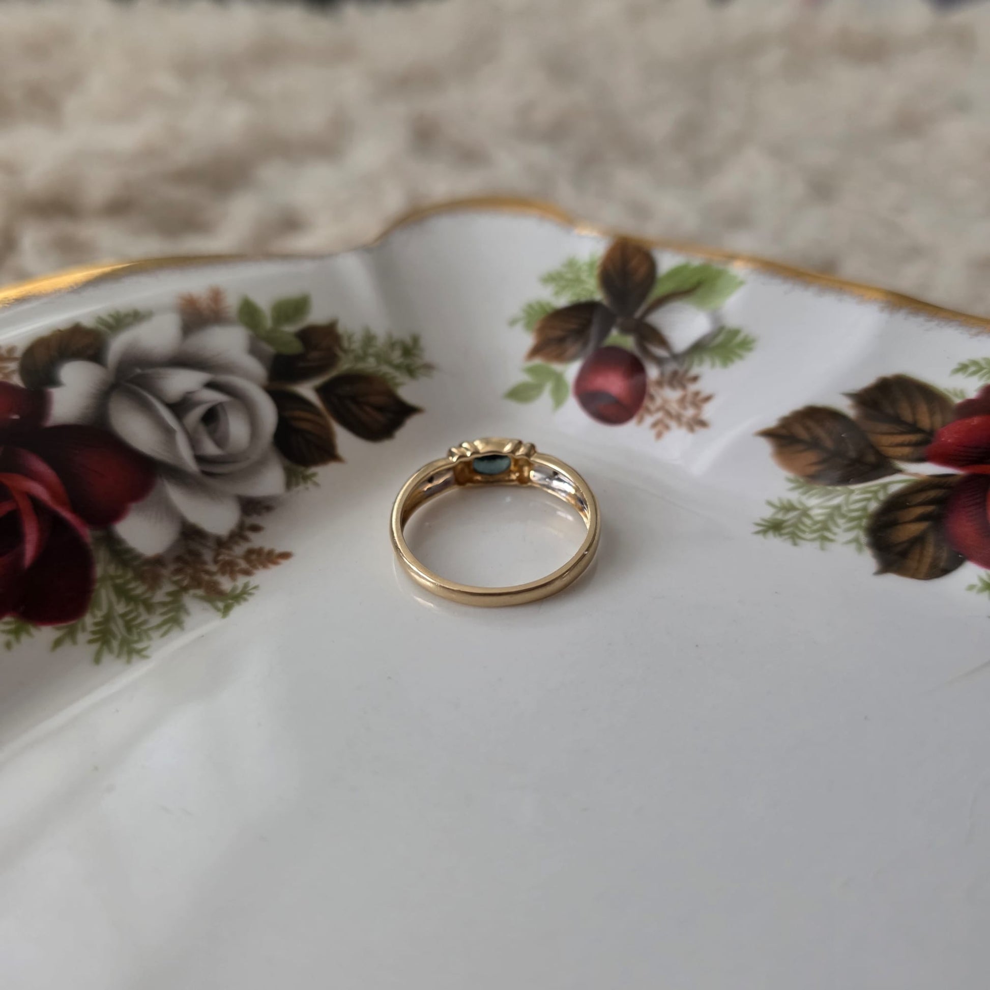 Vintage 14k gouden ring met petrol spinel en diamantjes