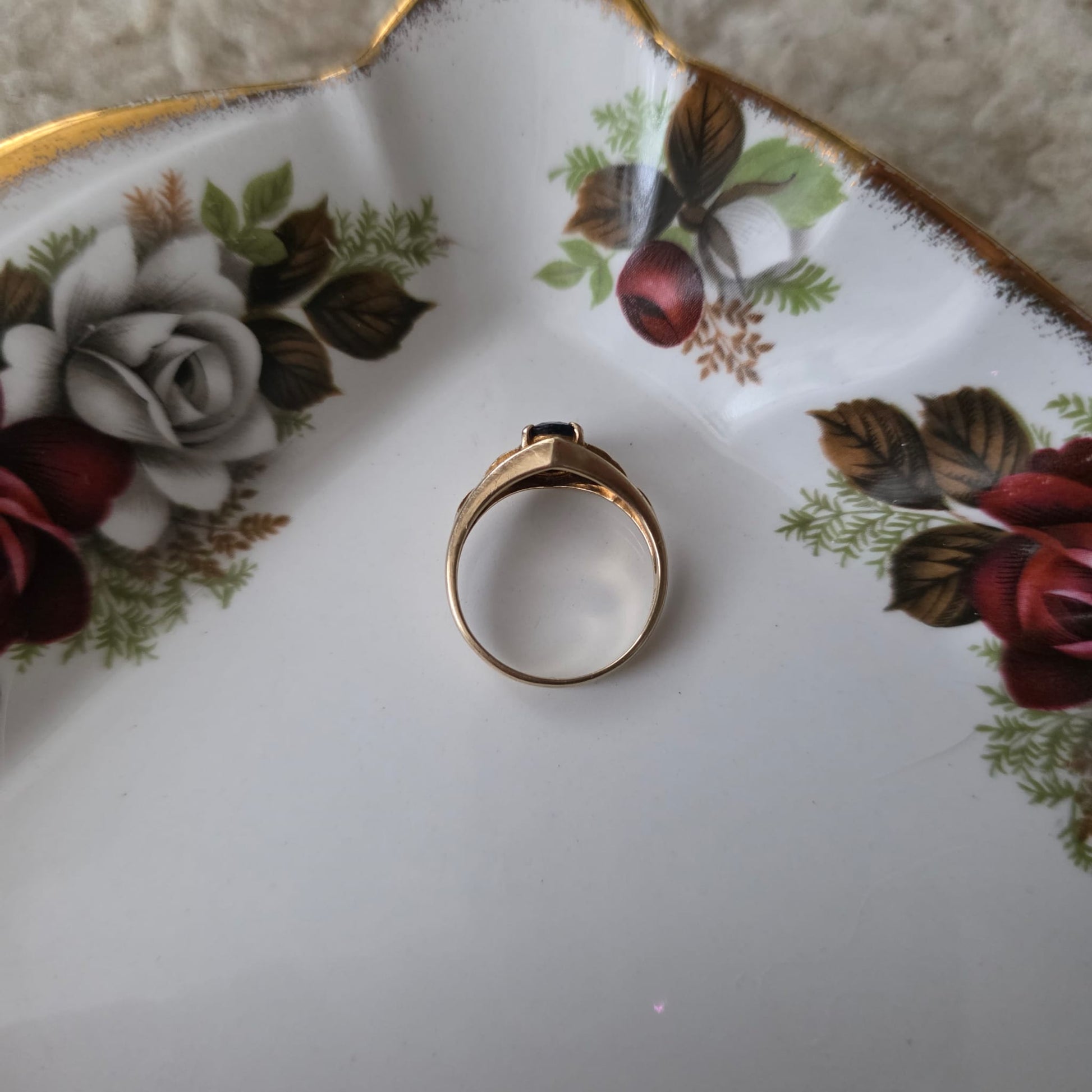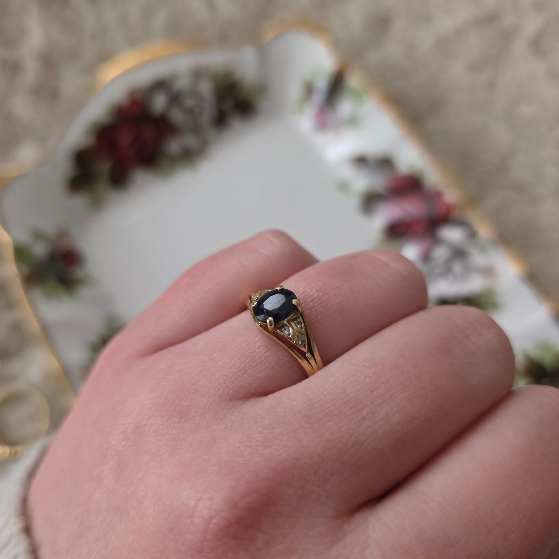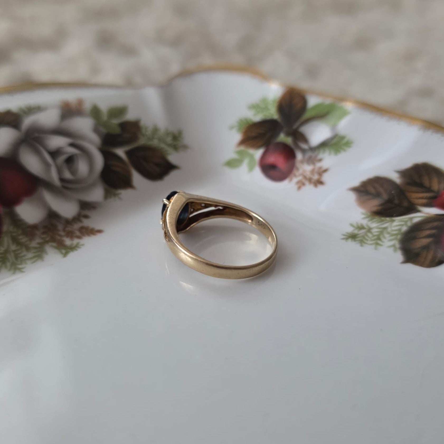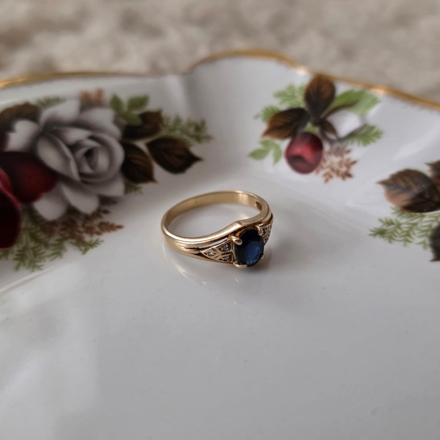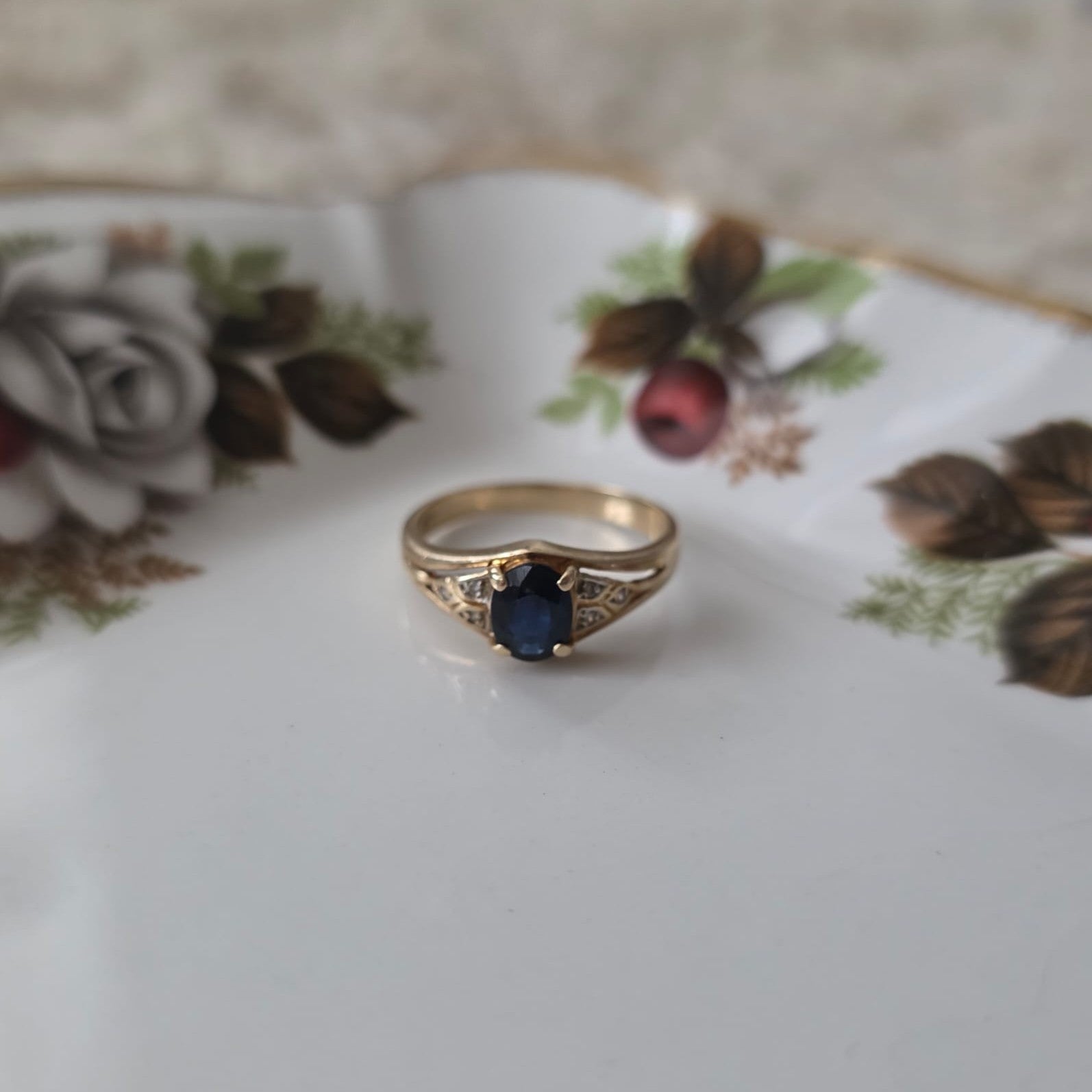 Vintage 14k gouden ring met saffier en diamantjes