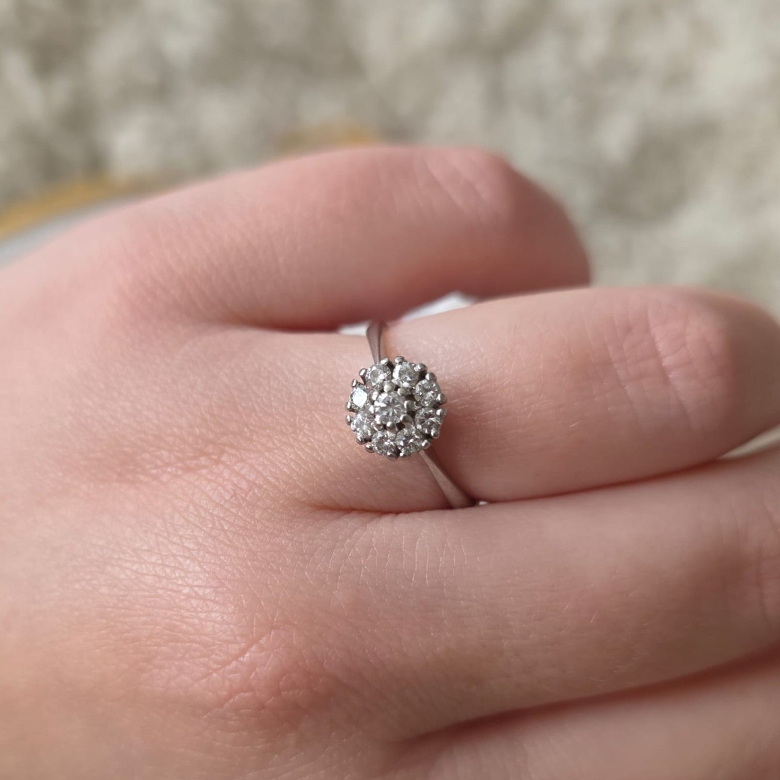 Vintage 14k wit gouden verlovingsring met 9 diamanten