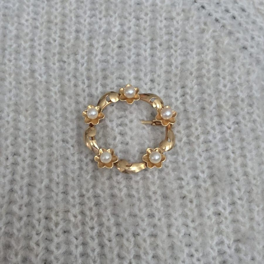 Vintage 18k gouden broche met parels