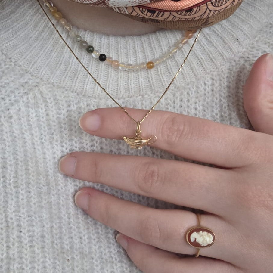 Onze Golden Hour Vintage sieraden zijn klaar voor een tweede leven, de sieraden zijn pre-loved en hebben daardoor mogelijk draagsporen. Alle sieraden zijn stuk voor stuk uniek en speciaal, er is geen tweede van! Houd er dus rekening mee dat uw sieraad niet nieuw is en dat er mogelijk oneffenheden, zoals kleine krasjes, chips en vlekjes te zien kunnen zijn. Eventuele 'defecten' die van invloed kunnen zijn op het gebruik of de kwaliteit van een item zullen altijd vermeld worden. Alle sieraden worden altijd gecheckt en schoongemaakt voordat ze de collectie in gaan.