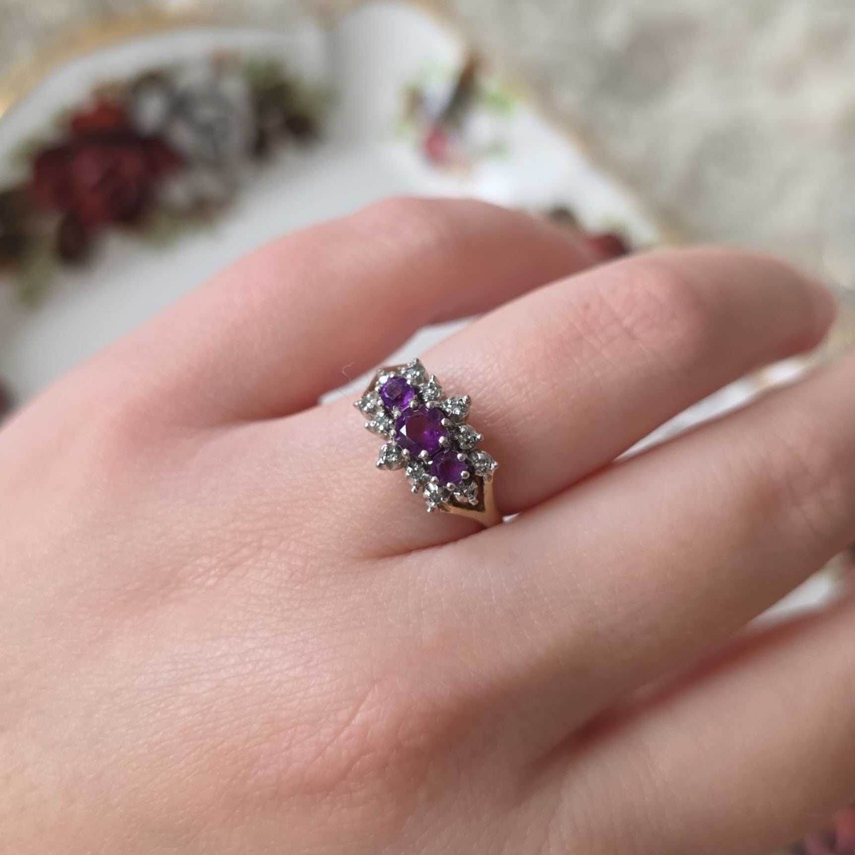 Vintage 9k gouden ring met paarse toermalijn en diamant