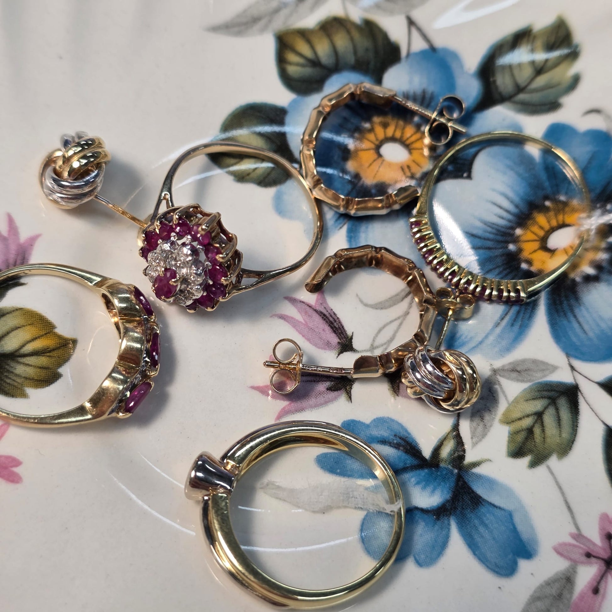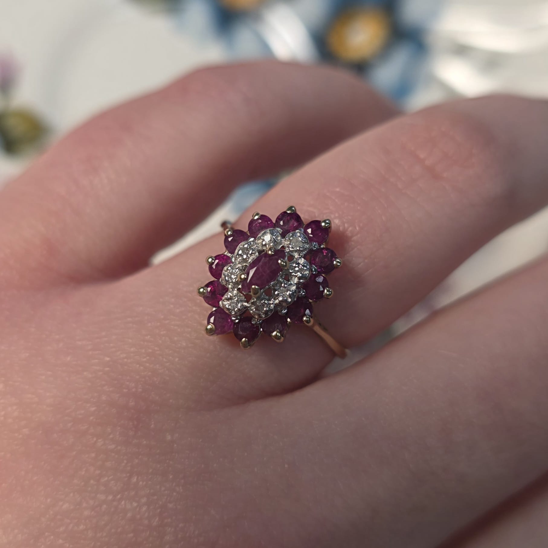 Vintage 9k ring met robijn en diamant